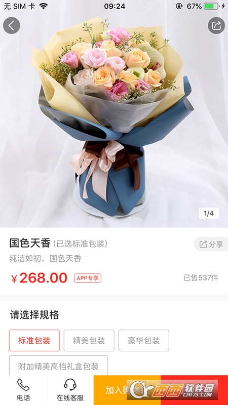 4、在花礼详情页,选定心仪包装规格,确认商品信息无误后,可选择加入购物车暂存,或直接点击立即购买,轻松推进下单流程。