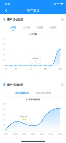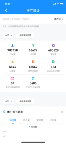 2、在渠道统计页面,您需按照流程完成注册等步骤,创建渠道链接后即可进行测试并投入商用。
