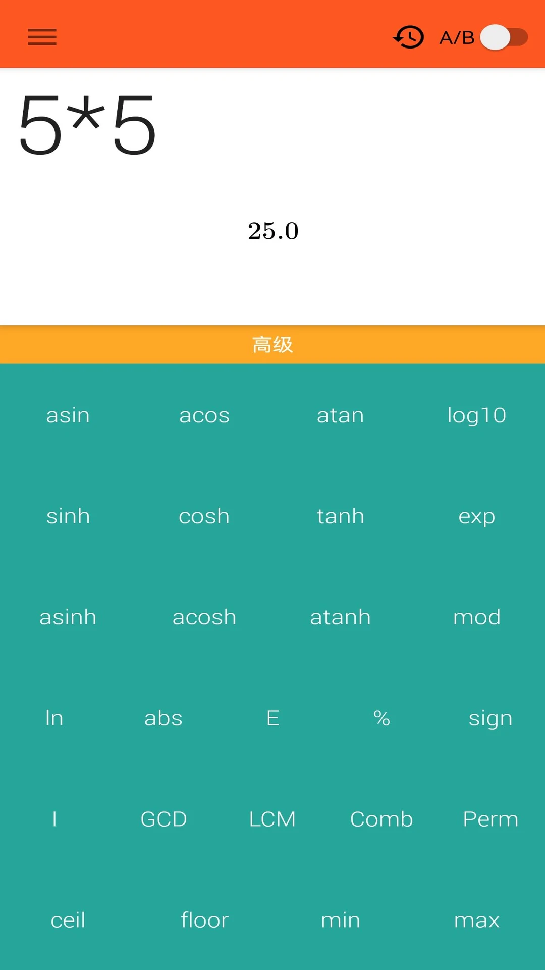 2、高级运算界面集成了反三角函数、双曲函数、对数、取模等丰富功能,还涵盖了最大公约数、最小公倍数等数论运算,轻松应对复杂数学计算场景。