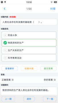 4、答题页面展示题目内容与选项,用户可选择答案后提交,也可收藏本题。提交后显示正确答案与解析,支持切换上一题或下一题。