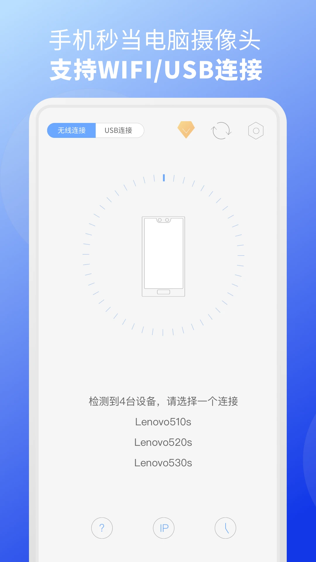 2、若未能成功搜索到电脑设备,您可以点击IP按钮,在弹出的输入框中填写电脑的IP地址,确认无误后点击连接即可。