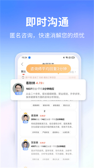 2、在线互动沟通方式,用户可与咨询师建立实时联系,展开具体问题讨论,使交流过程更加直接灵活。