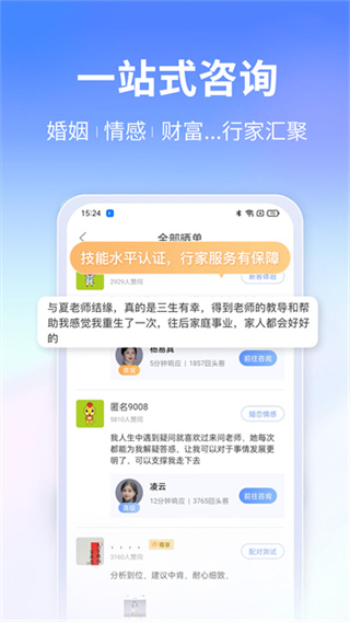 1、咨询类型广泛,包括婚恋关系解析、事业方向分析、生命运势评估等多方面服务内容,满足用户多样化需求。