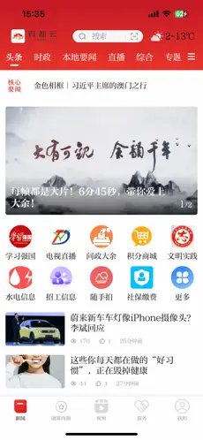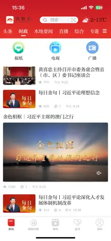 1、打开APP首页后,可通过顶部导航栏轻松切换至头条、时政等栏目,浏览各类要闻及专题内容,只需点击感兴趣的资讯标题即可。