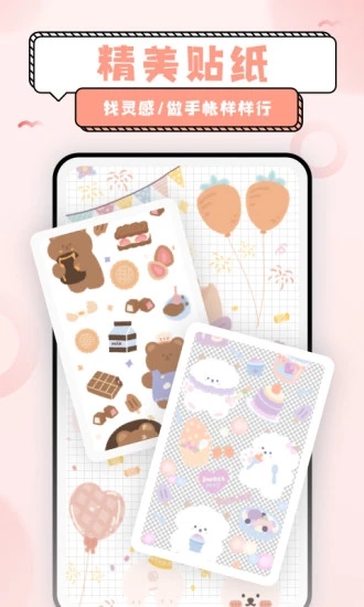 2、在美食贴纸页面浏览狸狸原等贴纸包,查看点赞数,选择心仪的贴纸用于手账美化创作。