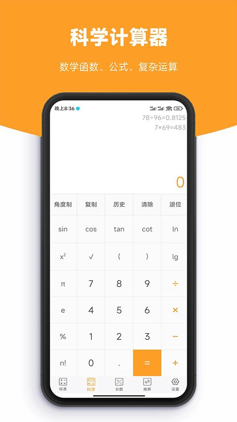 1、多模式运算体系包含标准型和科学型自由切换,进制转换支持二进制到三十六进制,满足用户多样化的计算需求。