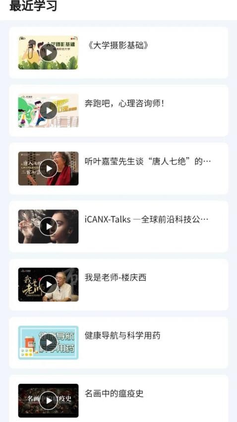 4、进入学习页面后,你可以看到最近学习的课程,直接点击即可继续你的学习之旅。