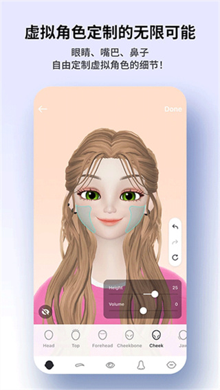 1、虚拟形象自由定制:支持创建专属3D角色,用户可自由调整外观细节并搭配服装,打造个性化虚拟形象。