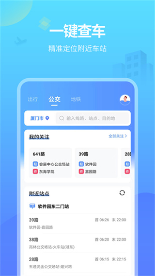 1、首页直观展示附近站点与推荐路线,公交信息查找更便捷。