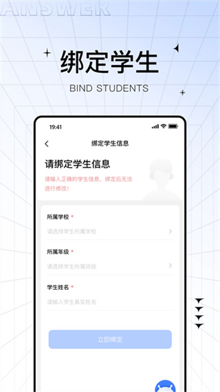 2、选择所属年级时,请务必确认无误,因为绑定后短期内将无法修改,以免影响后续使用。