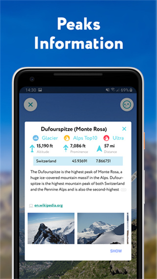 2、结合全球山峰与地形数据,提供详尽的信息支持,使路线规划更加科学、具有参考价值。