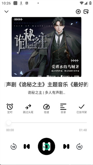 2 、播放界面支持调节播放速度、定时关闭以及进度控制,让用户的收听体验更加灵活多变。