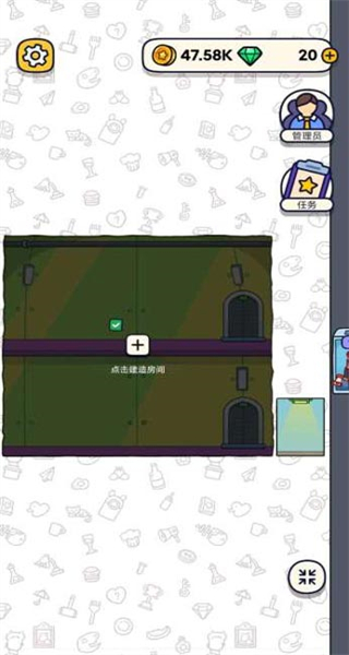 2、进入场景后,迅速找到带有加号标识的建造房间按钮,点击它,正式开启研究室的建造流程,推动任务进度向前。