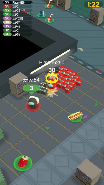 1、操控你的角色移动至场景中的食物区域,让角色摄取食物以增加队伍成员,从而壮大你的队伍规模。