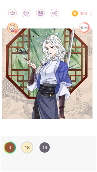 2、查看图案上的数字标识,从下方选择对应数字的颜色,填充到图案的相应区域,开启填色之旅。