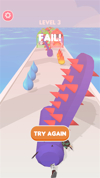 2、灵活操控角色在赛道上灵活移动,巧妙躲避各类障碍的同时,积极收集星星,朝着属性通道的方向稳步前进,逐步积累闯关进度。