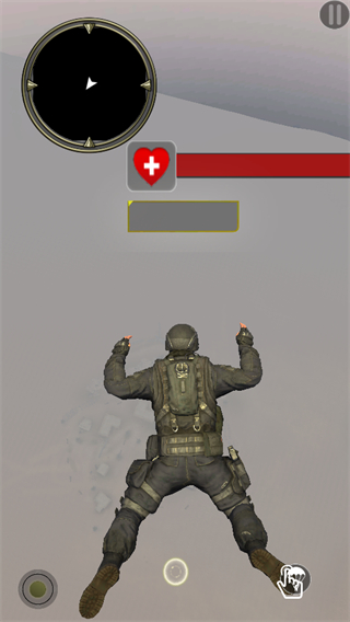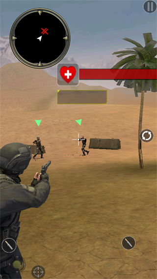 3、落地后,利用武器攻击遇到的敌人,同时借助场景中的掩体巧妙躲避攻击,时刻关注自身血量,保持生存状态。