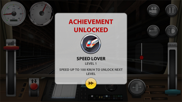 2、操作驾驶界面里的控制杆,结合仪表显示的信息,精准控制地铁的运行状态,朝着Garedel’Est站点稳步前行,推进驾驶进程。