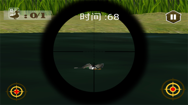 3、在狩猎场景中,通过操作瞄准相关功能锁定猎物,瞄准目标后完成对目标的猎取,同时留意界面显示的时间和进度,以此推进关卡进度。