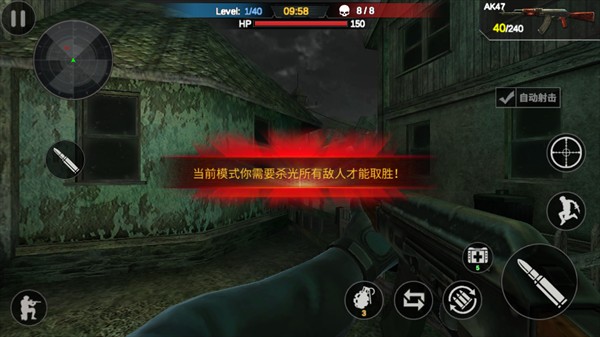1、游戏采用3D立体画面,为玩家打造了一个逼真的城市僵尸战场,让玩家仿佛置身于真实的战斗之中。