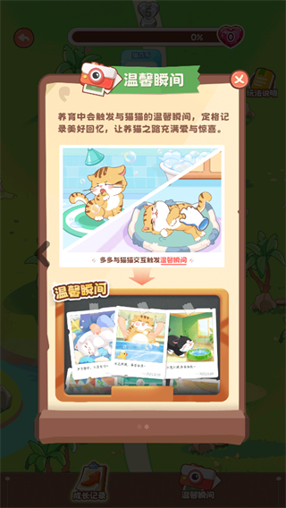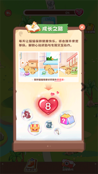 4、在饲养界面里使用食物、水壶等道具悉心照料猫咪,还能参与各类互动玩法,提升猫咪的状态,让饲养体验更加丰富多彩。
