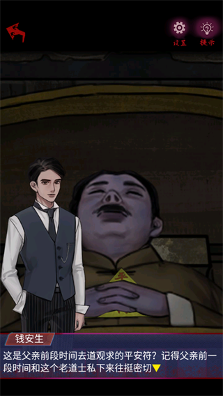 4、完成点燃操作后,角色钱安生会出现。查看其对应的剧情对话,了解当前剧情线索,继续推进怨憎会的游戏流程。