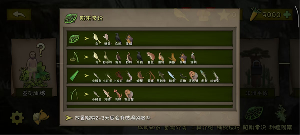 游戏中有多种投掷类工具,如石头、竹叉、弓箭等。有时会遇到一些猎物,如草原上的兔子、池塘里的鱼等。玩家需用投掷工具瞄准猎物进行猎杀,不同的猎物需要使用不同的投掷工具。