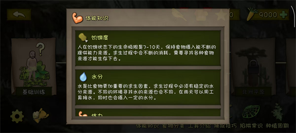 5、营地附近有一个兔窝,可能会刷新兔子。而且游戏初期1至8天可能不会下雨,所以需要多挖掘面包根,同时适时多采集一些仙人掌果。