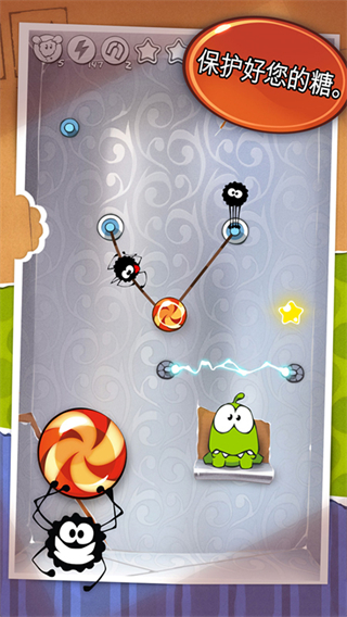 4、收集挑战系统设立三阶完成标准,基础目标要求糖果送达终点,进阶目标则需要收集全部星星,满足不同玩家的挑战需求。