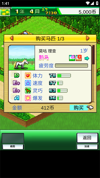 2、深度的游戏内容:游戏内涵丰富,除赛马比赛外,还有马匹管理、牧场经营等多种玩法,让玩家乐在其中。
