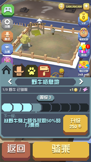 解锁大量站点,将所需的栖息地进行升级,再去驯服多种动物,就能达成营业状态。