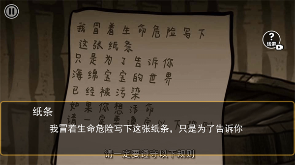 3、仔细查看旁白给出的规则提示,特别是关于海绵哥的注意事项,务必遵循规则以顺利推进游戏进程。