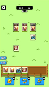 2、进入每日一关的特定关卡后,玩家要仔细寻找相同样式的卡片,并将其拖动至下方的栏位中,完成相同卡片的精准匹配操作。