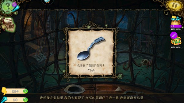 2、依据提示点击勺子,拾取该道具,了解可将拾取的物品放置到对应位置的操作规则,熟悉道具使用逻辑。