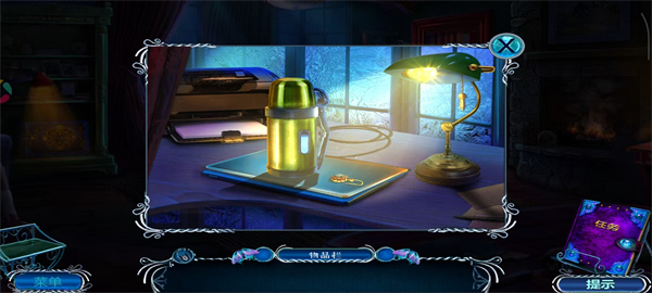 4、按照提示在桌面区域展开探索,获取出现的物品,借助这些物品推动密室解谜的进程。