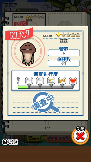 4、要及时补充食物,若食物不足且放任不管,菇菇会干枯变成枯哭菇菇。之后点击关闭,即可完成新手教学。