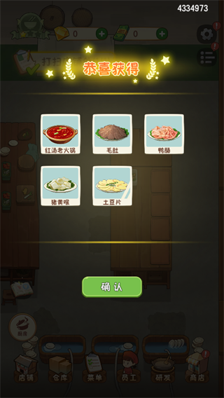 3、收集对应的食材物品,将其合成为锅底,解锁新的锅底种类,丰富店铺的菜品选择。