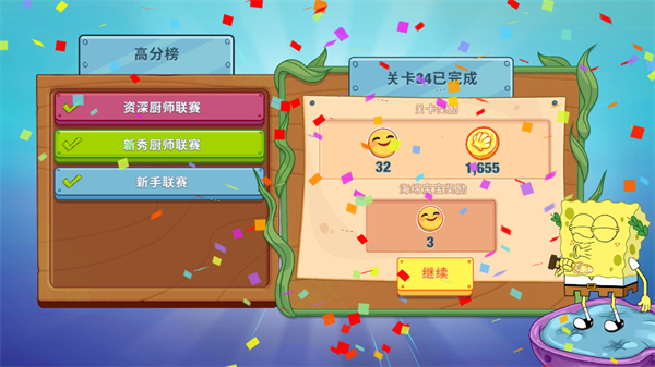 4、多种玩法体验:海绵宝宝烹饪大冒险拥有多种有趣的游戏模式,带给你更多欢乐体验。尝试不同模式下的各种玩法,享受游戏带来的乐趣和挑战。