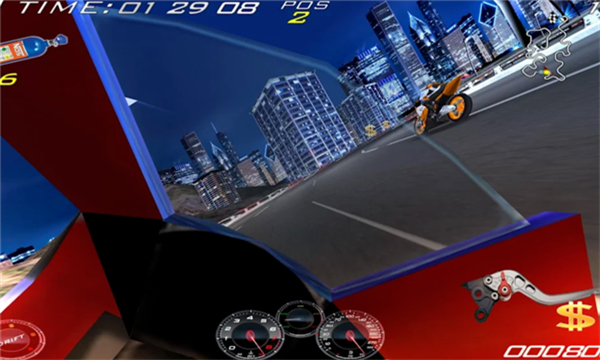 3、运用左右方向按钮灵活调整摩托车的行驶路线,在隧道等复杂路段能够迅速变道,始终维持领先位置,稳步推进比赛进程。