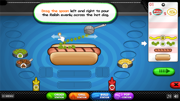 使用鼠标左键点击或拖动所需要的物品,根据游戏内的提示经营热狗店,轻松上手并享受游戏乐趣。