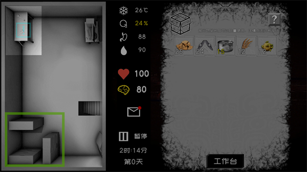 3、打开物品界面,从众多设施中选择想要建造的,比如床、火炉等,消耗相应材料进行建造,以此提升场景内的生存条件。