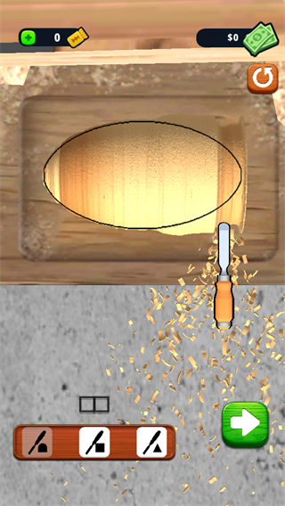 在挑战中,玩家需充分发挥手中刀具的潜力,为旋转中的木块进行精细雕刻。木头旋转时,需进行极为精准的操作,以确保雕刻效果。