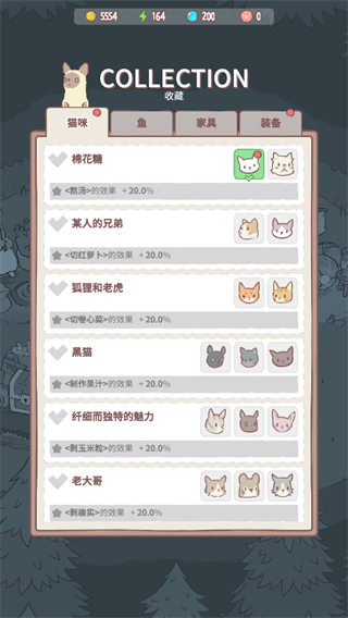 2、猫汤物语包含多种有趣的食谱,解锁美食,治疗其他可爱的动物。