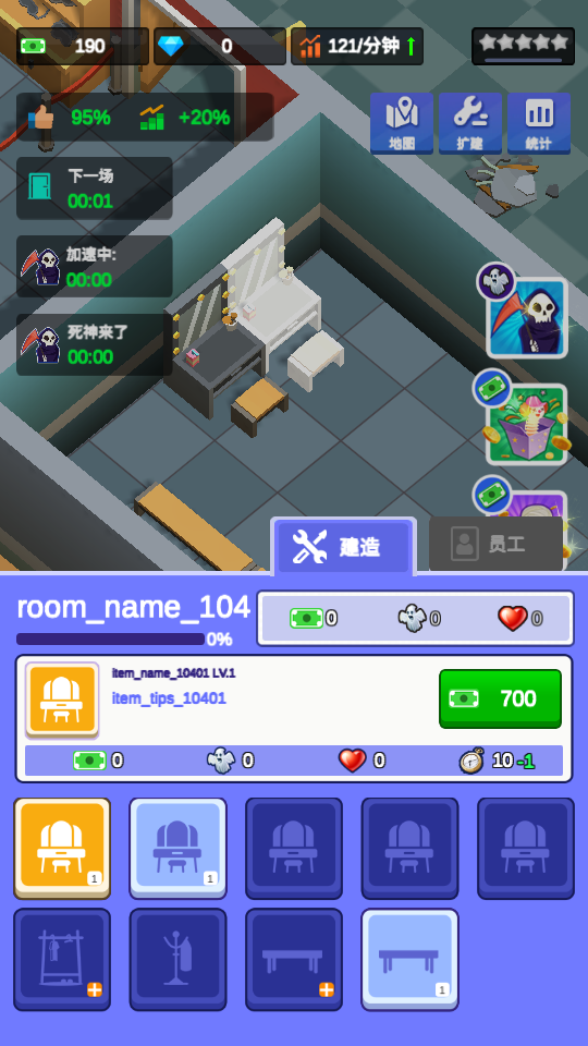 1、所有事物都能按照你的想法建造,慢慢将小旅馆发展成五星密室店铺。