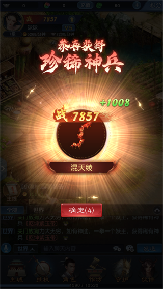 2、踏入角色界面,轻点一键装备,即可为角色披上战甲,大幅提升战力数值。