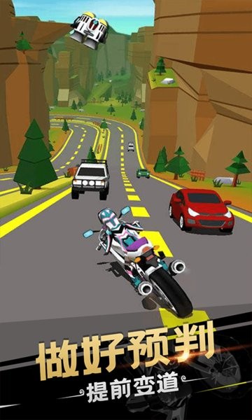 3、操控摩托车沿着道路稳步前行,朝着前方的目标区域不断移动,同时要时刻注意调整方向,持续增加行驶的距离。