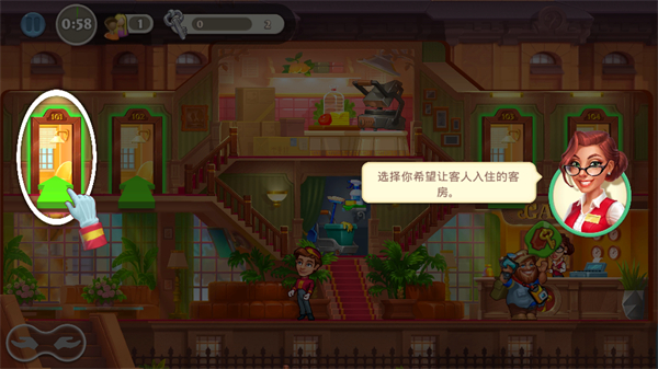 2、按照指引点击房间,为客人分配客房,完成客房安排的基础操作,从而积累初始收益。
