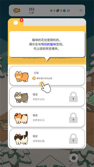 2、通过不断培养,了解猫的品种,还能赚取丰厚的资金,以维持这座可爱猫咪村庄的正常运转;