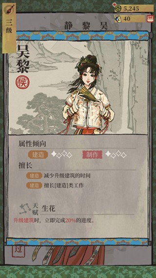 对于现有建筑的升级,前期首选吴黎!后期包拯、魏忠贤、刘伯温、李白、唐伯虎等角色表现更佳。