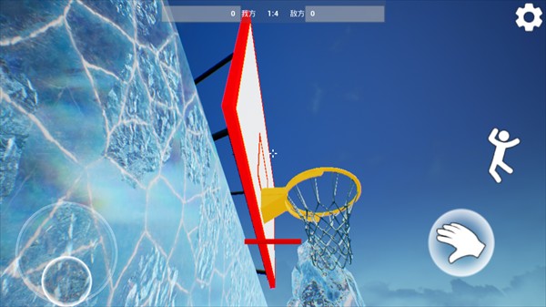 2、在冰面场景中,通过滑动轮盘向篮球所在位置靠近,利用操作按钮灵活调整移动方向,努力获取篮球。
